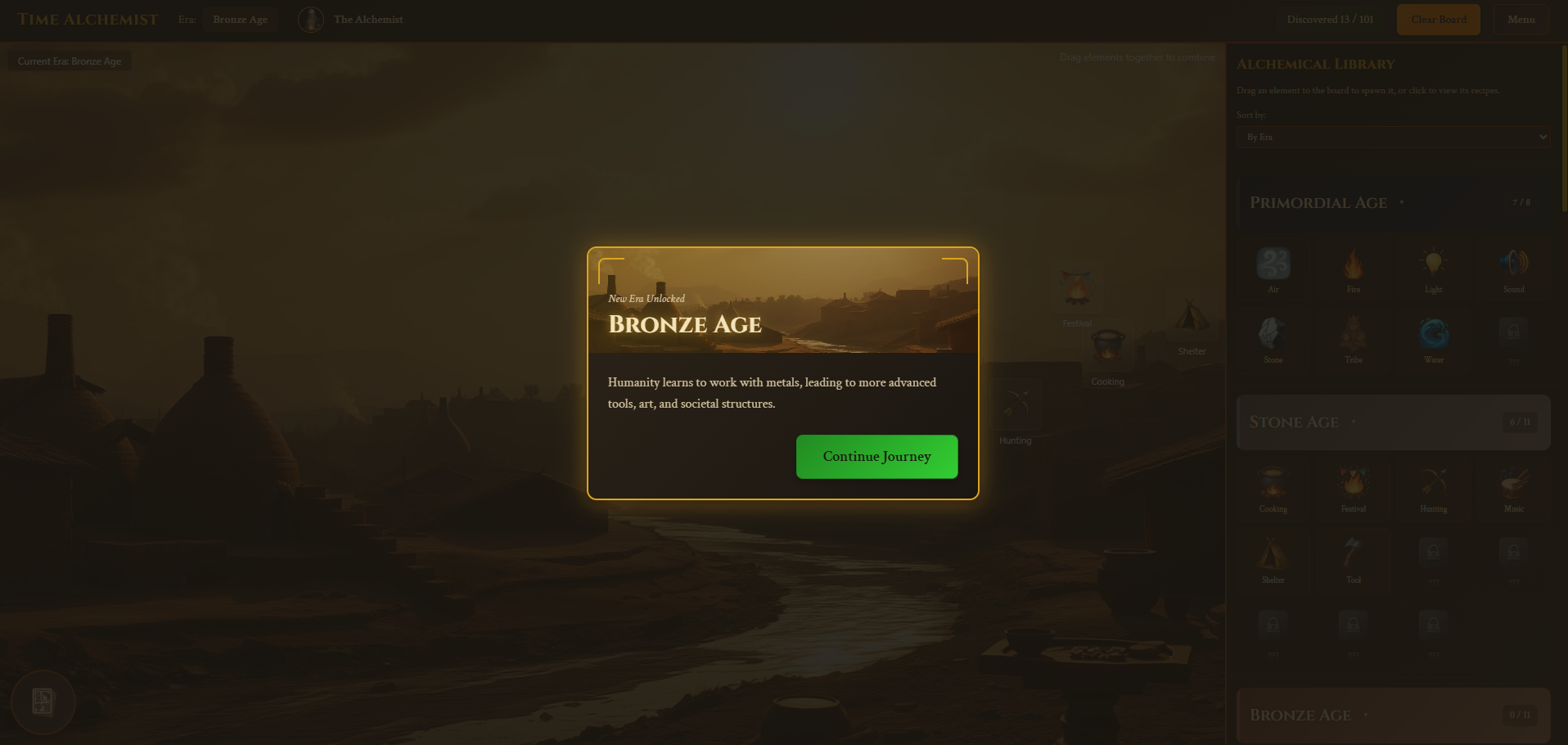 Do you have what it takes to guide humanity from a primordial spark to a cosmic civilization? In Time Alchemist, you are the architect of history. Begin with the basic building blocks of the universe and combine them through clever experimentation to discover everything from the wheel and pottery to computers and AI. Each new discovery unlocks new possibilities and propels you further along the timeline of innovation.